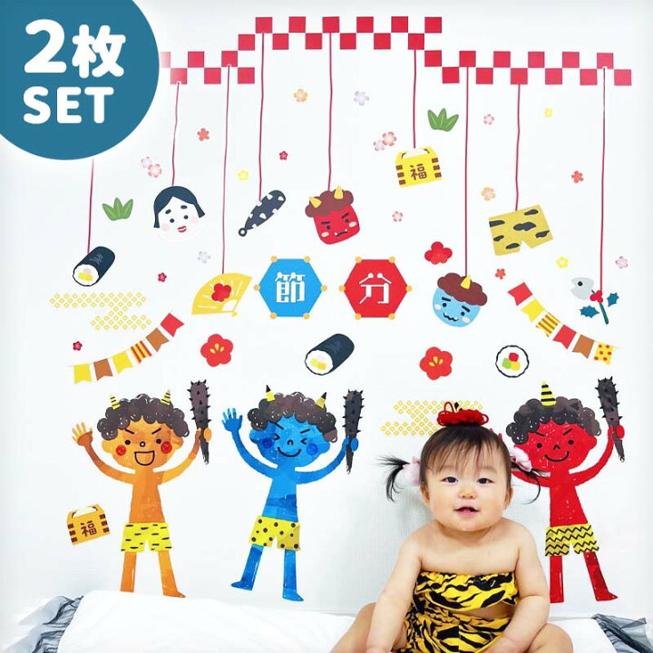 ウォールステッカー 節分 子ども 鬼 飾り鬼ざんまいはがせる 壁 シール ステッカー 壁紙 飾りつけ おしゃれ かわいい 北欧 パーティー 豆置物 コスプレ タペストリー 衣装 赤ちゃん 豆まき イベント おに 鬼のパンツ カラフル 受注印刷ウォールステッカーのスクウェア。