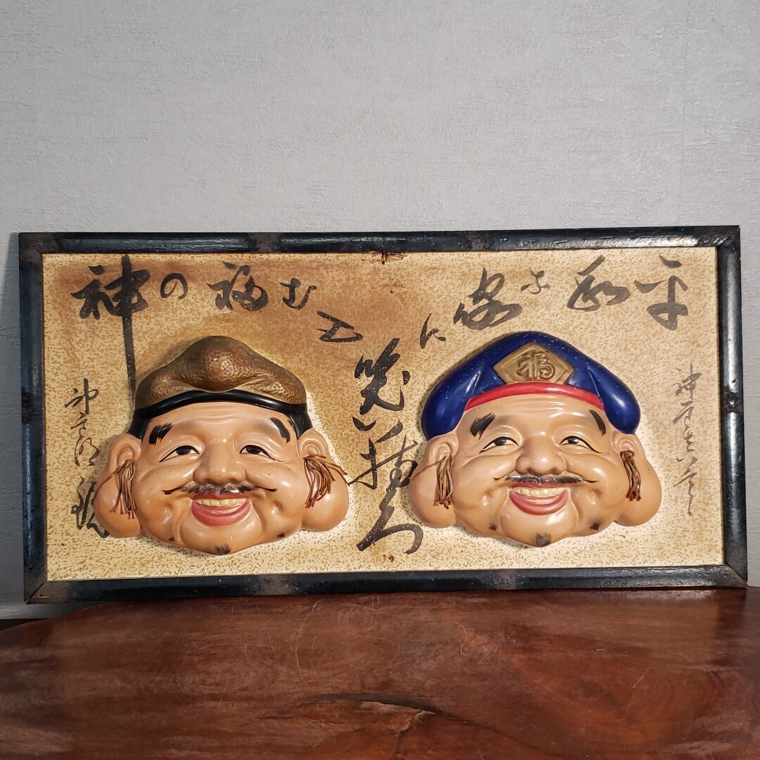 お面飾り 恵比寿様 大黒様 お面 飾り 古道具 アンティーク。