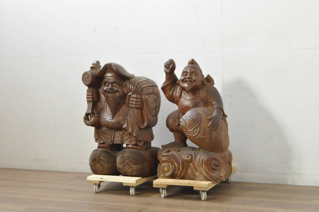 置物 大黒天 恵比寿 木彫 オブジェ 七福神 大黒様 恵比寿様 開運 縁起物 飾り 和風 日本 商売繁盛。