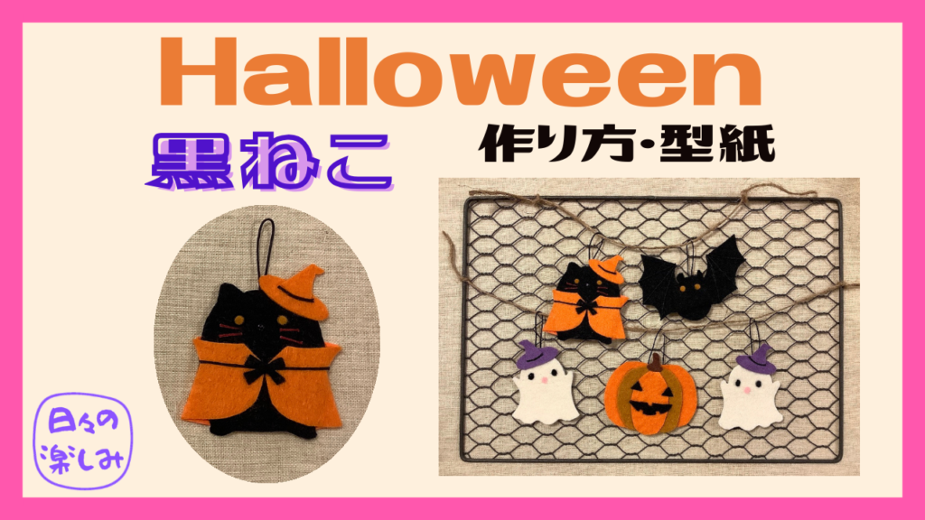 フェルトで作る 貼るだけ簡単 ハロウィンガーランドパーツ シリーズ3ねこ 作り方・型紙 Felt Halloween Cat GarlandTutorial & Patternどんぐりの日々の楽しみ。