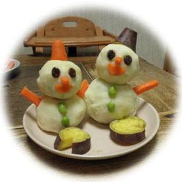 マッシュポテトで雪だるま♪。