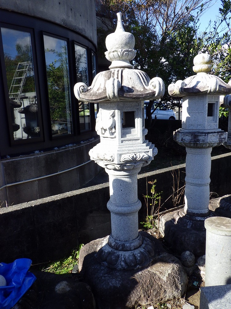春日石灯篭春日灯篭10尺 みかげ石 群馬県太田市のお寺に据え付け。