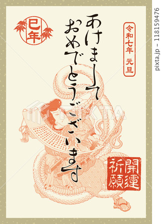 2025年賀状テンプレート「POPアート風デザイン」あけおめ 手書き用スペース付パターンのイラスト素材118532262- PIXTA。