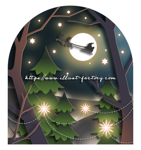 切り絵を重ねたような奥行感のある、クリスマスイラスト S42イラスト工房。
