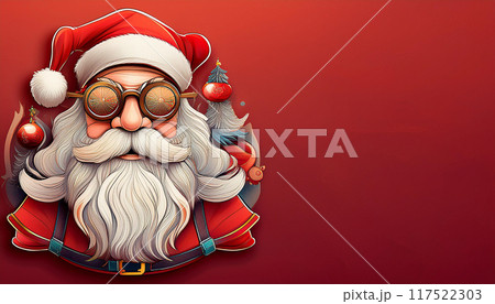 切り絵風のおしゃれなメリークリスマスのロゴとコーヒーを飲んでリラックスするサンタクロース の Stock イラストAdobe Stock。