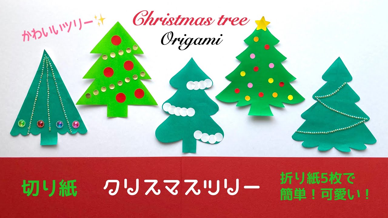 折り紙 切り絵 Origami クリスマスツリーを簡単切り絵で!1分で作成!!親子でつくてみよう。