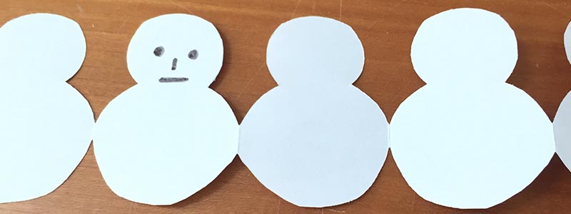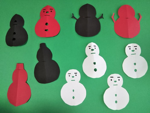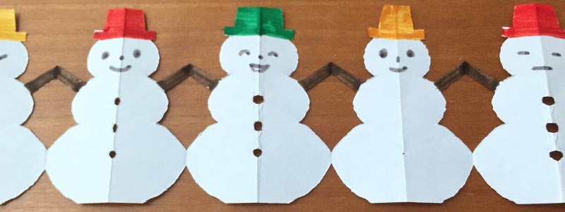 切り紙で簡単に作る「ツリーと雪だるまの切り紙飾り」世界文化ワンダ。