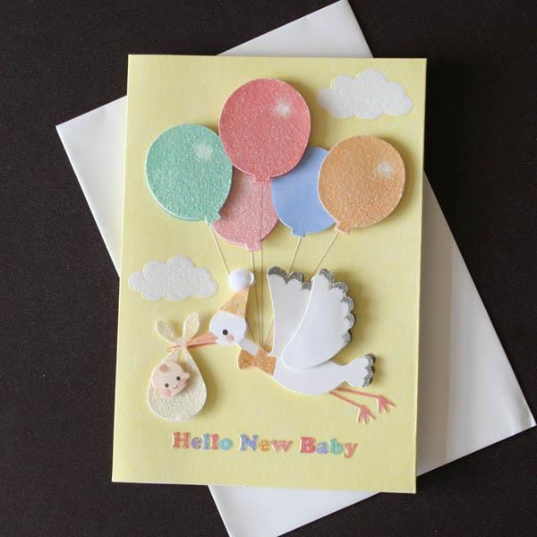 出産祝いカード「風船とコウノトリが運ぶ赤ちゃん」 イエロー,ラメ,立体加工ネコポス可: 和歌山産フルーツのケーキARANCIA - 通販 -Yahoo!ショッピング。