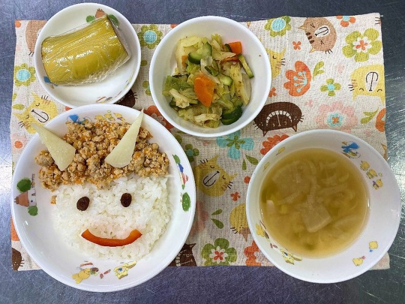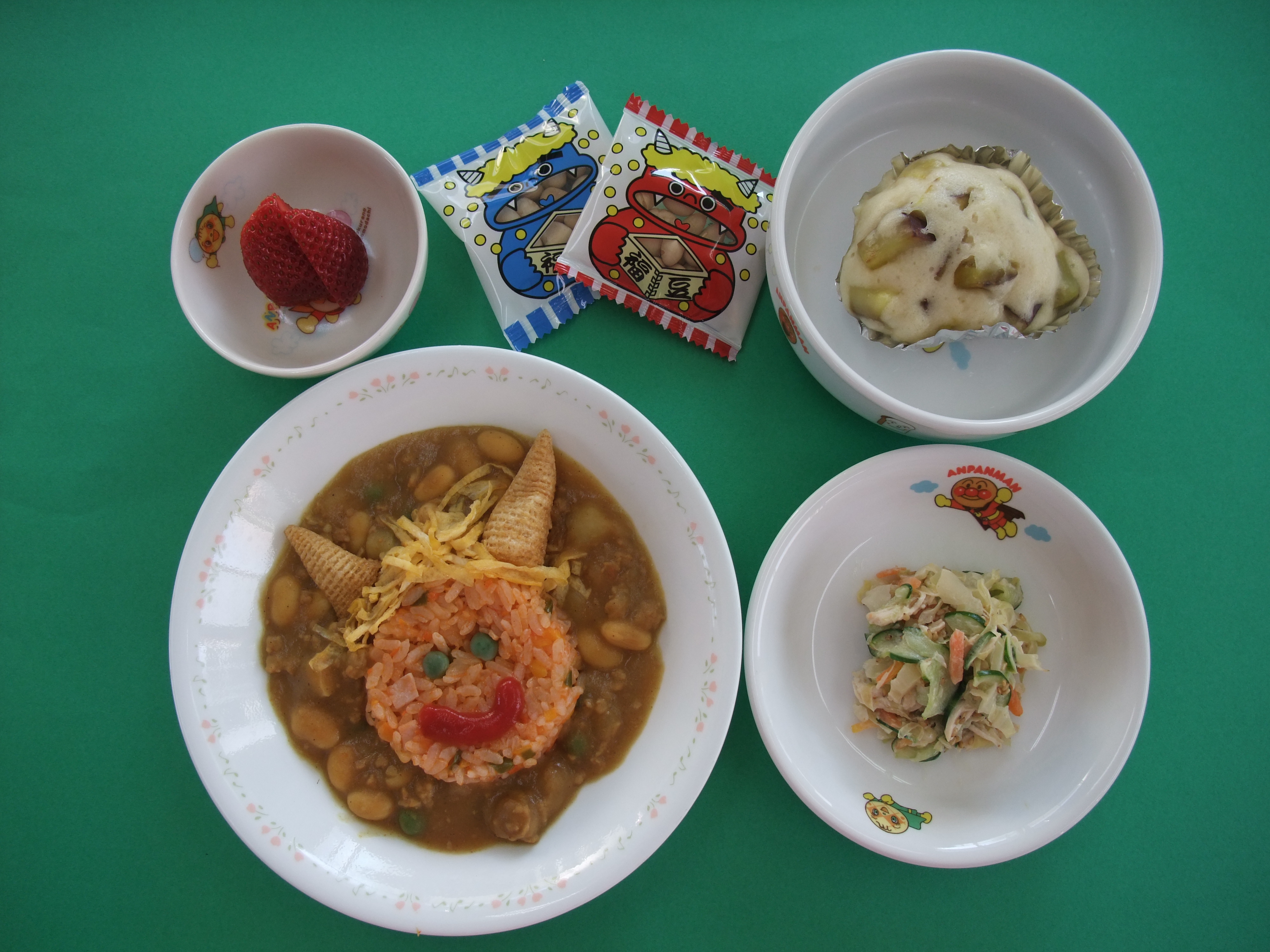 節分メニュー👹鬼ごはん🍛太陽の子保育園東京都羽村市。