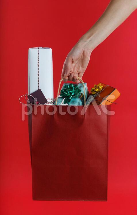紙袋に入ったクリスマスプレゼントを持つ手1 - No: 2093921写真素材なら「写真AC」無料 フリー ダウンロードOK。