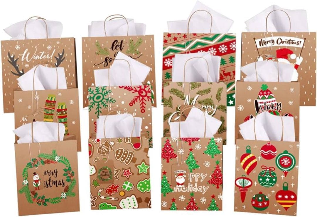 Amazonクリスマス ラッピング 袋 小 12枚入れ4種類 紙袋21cm×15cm×8cm 丸紐 厚手 ギフト 袋 ペーパーバッグ ギフトXMAクリスマスプレゼント パーティー お祝いギフトバッグ・袋文房具・オフィス用品。