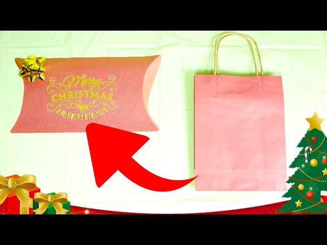 100均DIY 紙袋からクリスマス用ギフトボックス作ってみた How to make mini gift box from shopping bag。