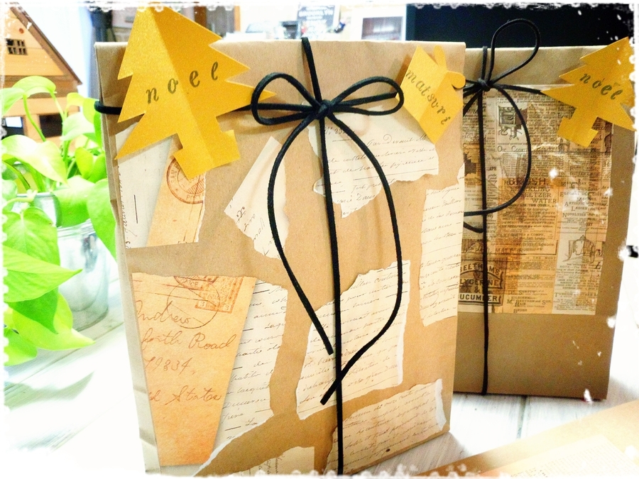 簡単 紙袋のラッピングアレンジ方法② ◆クリスマスプレゼントやバレンタインラッピングなどいろいろな場面に。