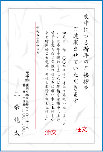 文例 喪中はがき テンプレートと書き方プリントメイト。