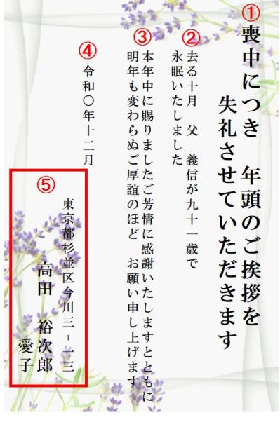文例 喪中・年賀欠礼状 喪中はがき -2手紙の書き方。