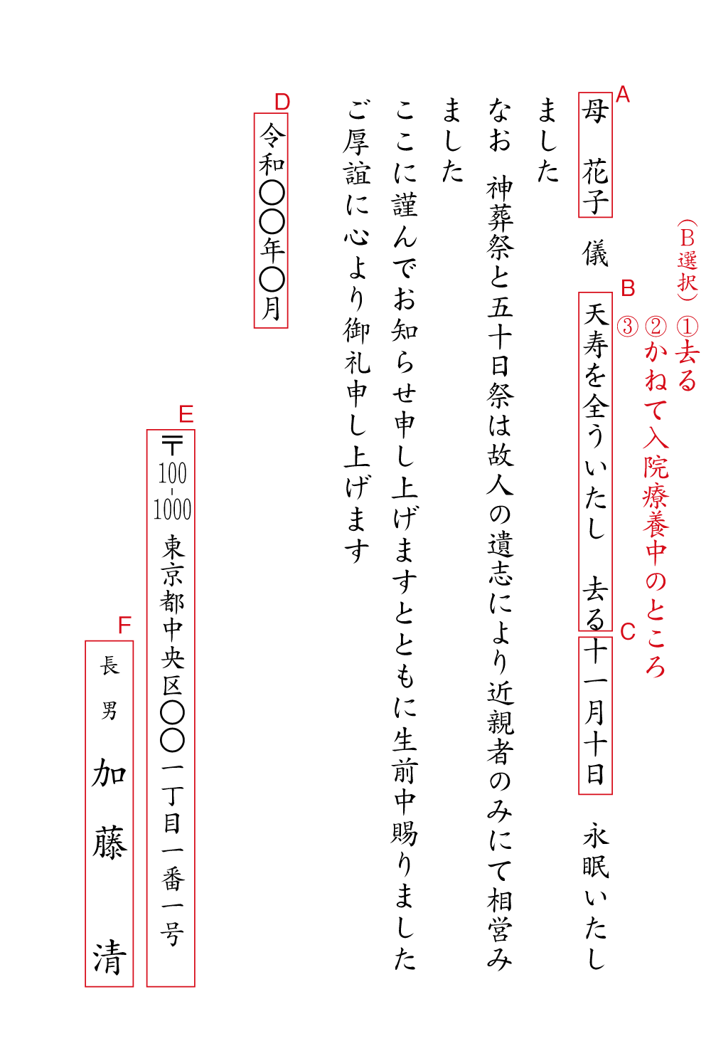 はがきで作る・死亡通知死亡報告の文例集。 - 良いあいさつ状.com。