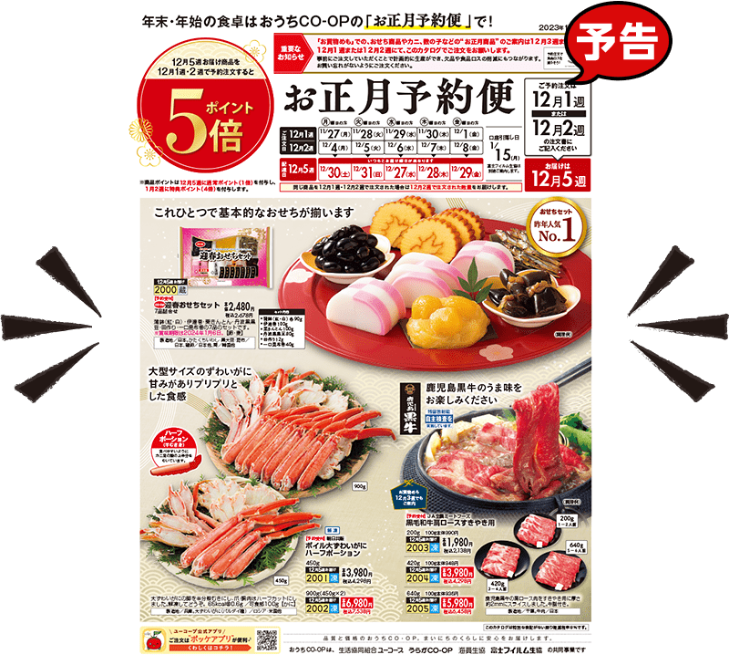 おうちCO-OP eふれんず2024年 お正月商品は「お正月予約便」で事前予約してください。