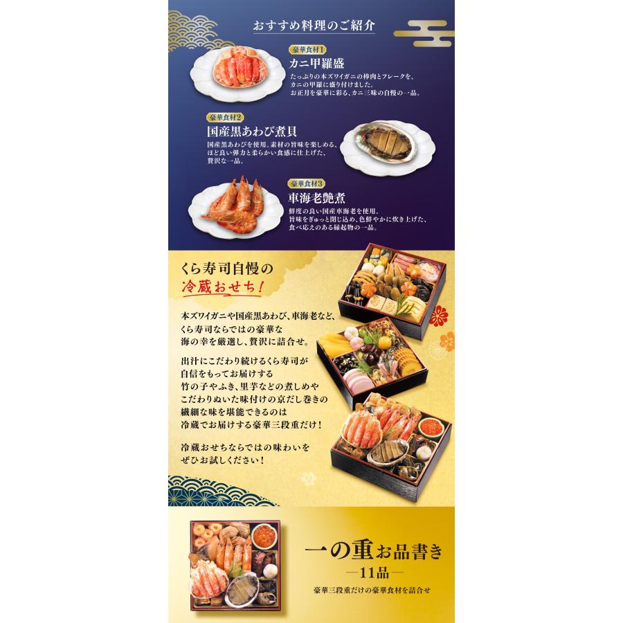 おせち 予約 くら寿司 早割 10 31までクーポンで1,000円引 豪華三段重 食事券3,000円分冷蔵12 31着、時間指定不可。