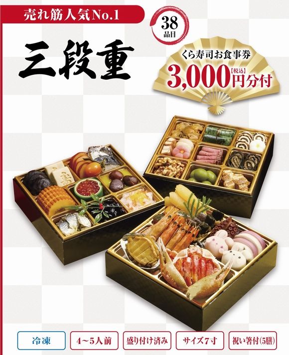 くら寿司 2023年おせち通販予約、“生おせち”の「豪華三段重」、“さば・焼さば・うなぎ”の「3種の棒寿司お正月セット」、気軽な「迎春セット」など展開食品産業新聞社ニュースWEB。