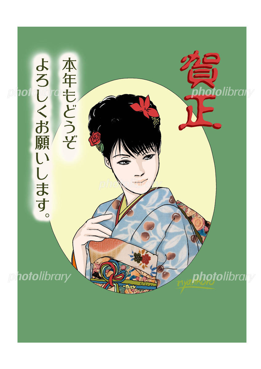 年賀状テンプレート着物の女性 イラスト素材368401- フォトライブラリ。