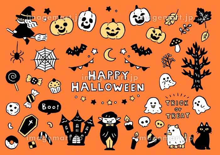 手描き風 シンプルかわいい ハロウィンイラスト素材セット オレンジ167108187- イメージマート。