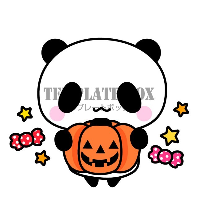 10月31日ハロウィンの日☆ランタンを持ったパンダちゃん可愛いワンポイントイラスト無料イラスト素材TemplateBox。