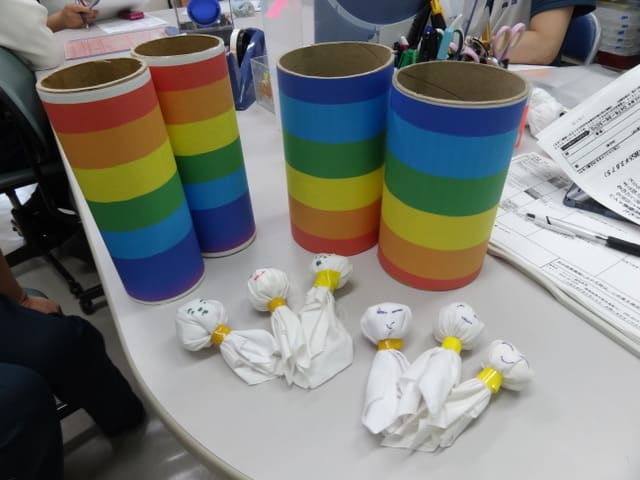 梅雨にちなんだ雨と虹を制作しました。NPO結いのき トピックス。