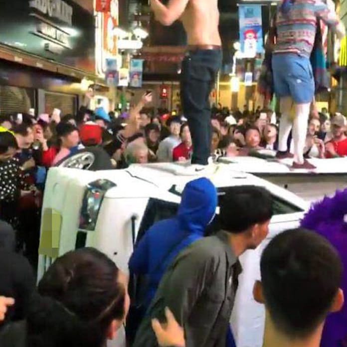 ハロウィン騒ぎで一部が暴徒化で軽トラック横転事故 海外からの反応は。