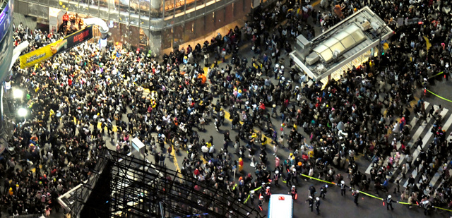 ハロウィーンで渋谷に熱気=スクランブル交差点。