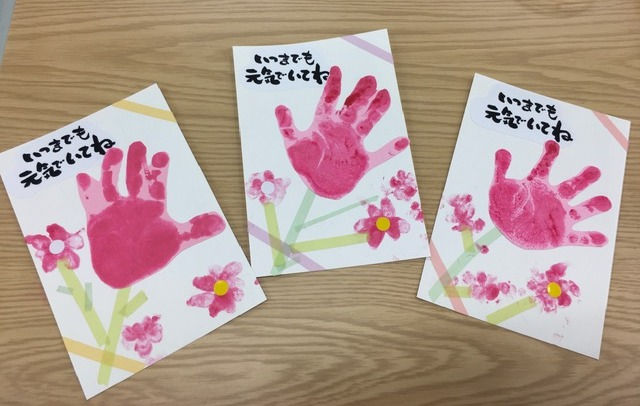 敬老の日のはがき製作にじいろ保育園ブログ。