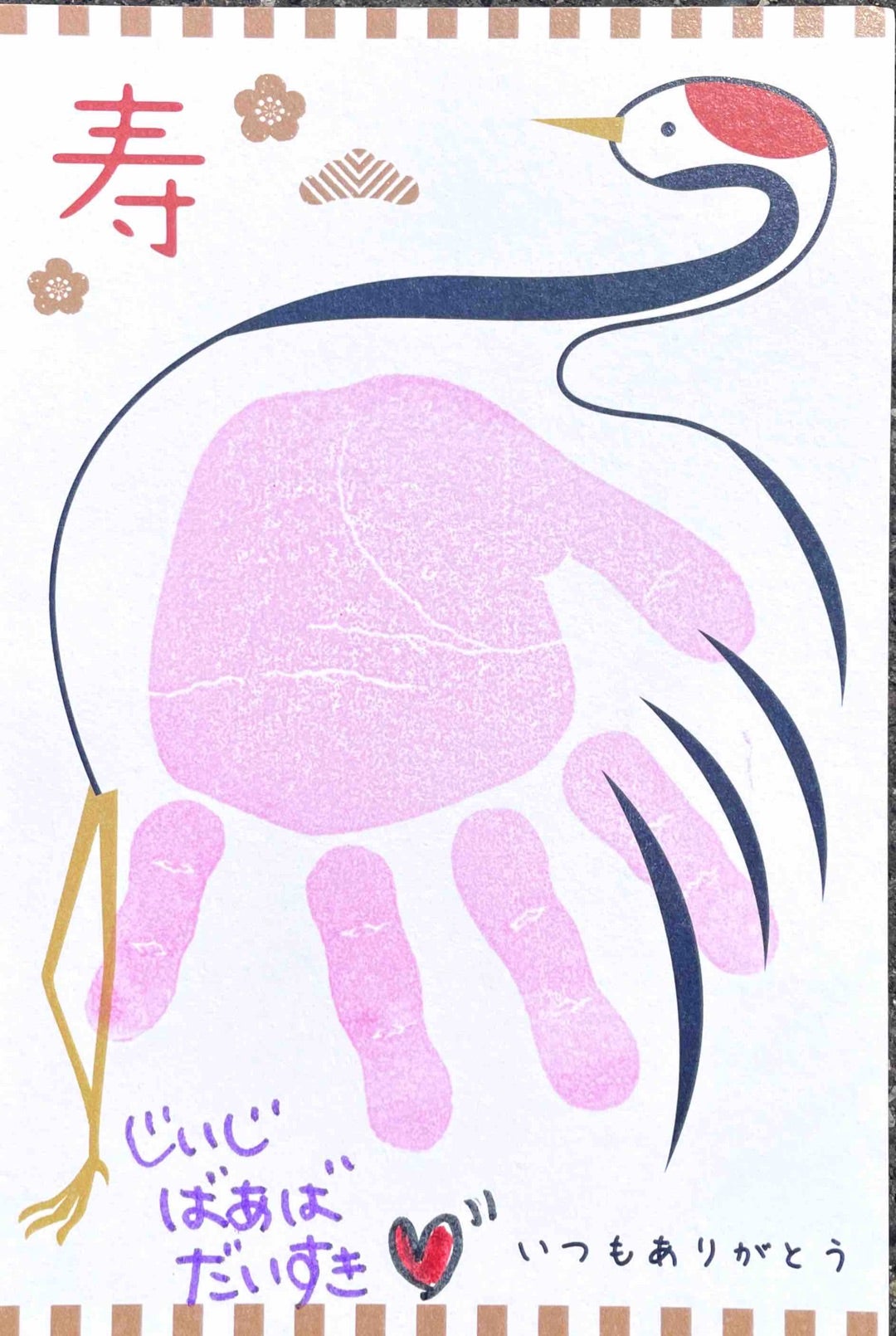 敬老の日のプレゼントツルの手形アートに挑戦。