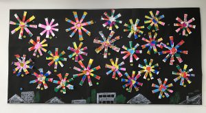 無料ダウンロード型紙で「花火」の壁面飾りを作ってみた!夏 祭り7月 8月 保育園 幼稚園 介護施設 デイサービス 壁面装飾 製作壁面飾り型紙工房。