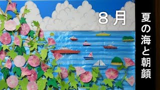 8月の壁面飾り - YouTube。