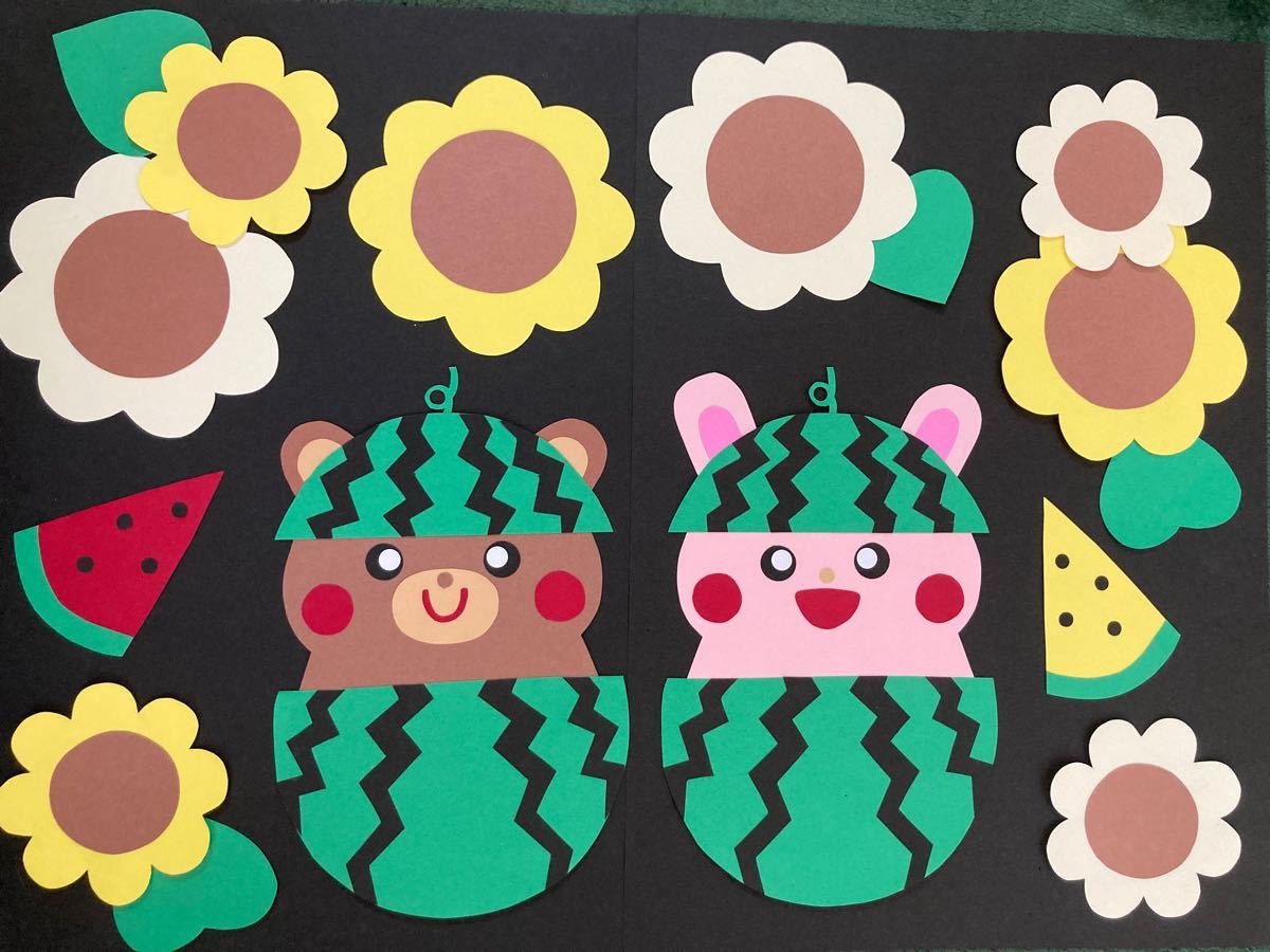壁面飾り夏 ひまわり畑で夏を楽しもう♪ スイカ&帽子 幼稚園 保育園 施設 病院 掲示板 夏のガーランド 2本セット7月 8月 夏 夏休みひまわり すいか スイカ 朝顔 掲示板 壁面 壁面飾り 掲示物 ガーランド 吊るし飾り つるし飾り 画用紙製- メルカリ。