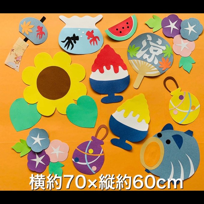 ☆ハンドメイド 壁面飾り 7月 8月 夏 あさがお ひまわり かき氷 保育園 - じゅにくろ'S GALLERYminne byGMOペパボ国内最大級のハンドメイド・手作り通販サイト。