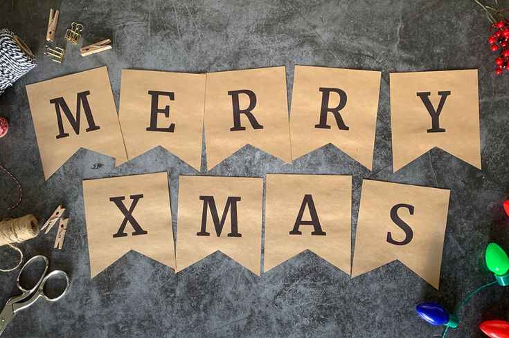 クリスマス手作りガーランド:イラストと文字 - 無料でダウンロードできるテンプレート。