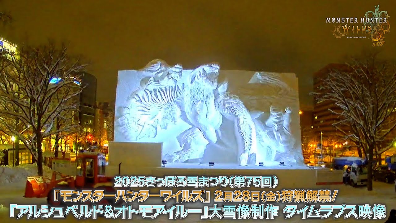 モンハン最新作2025さっぽろ雪まつり に登場!白の孤影『アルシュベルド』のダイナミックな姿が大雪像に「モンスターハンターワイルズ2月28日狩猟解禁」を前に 北海道札幌市。