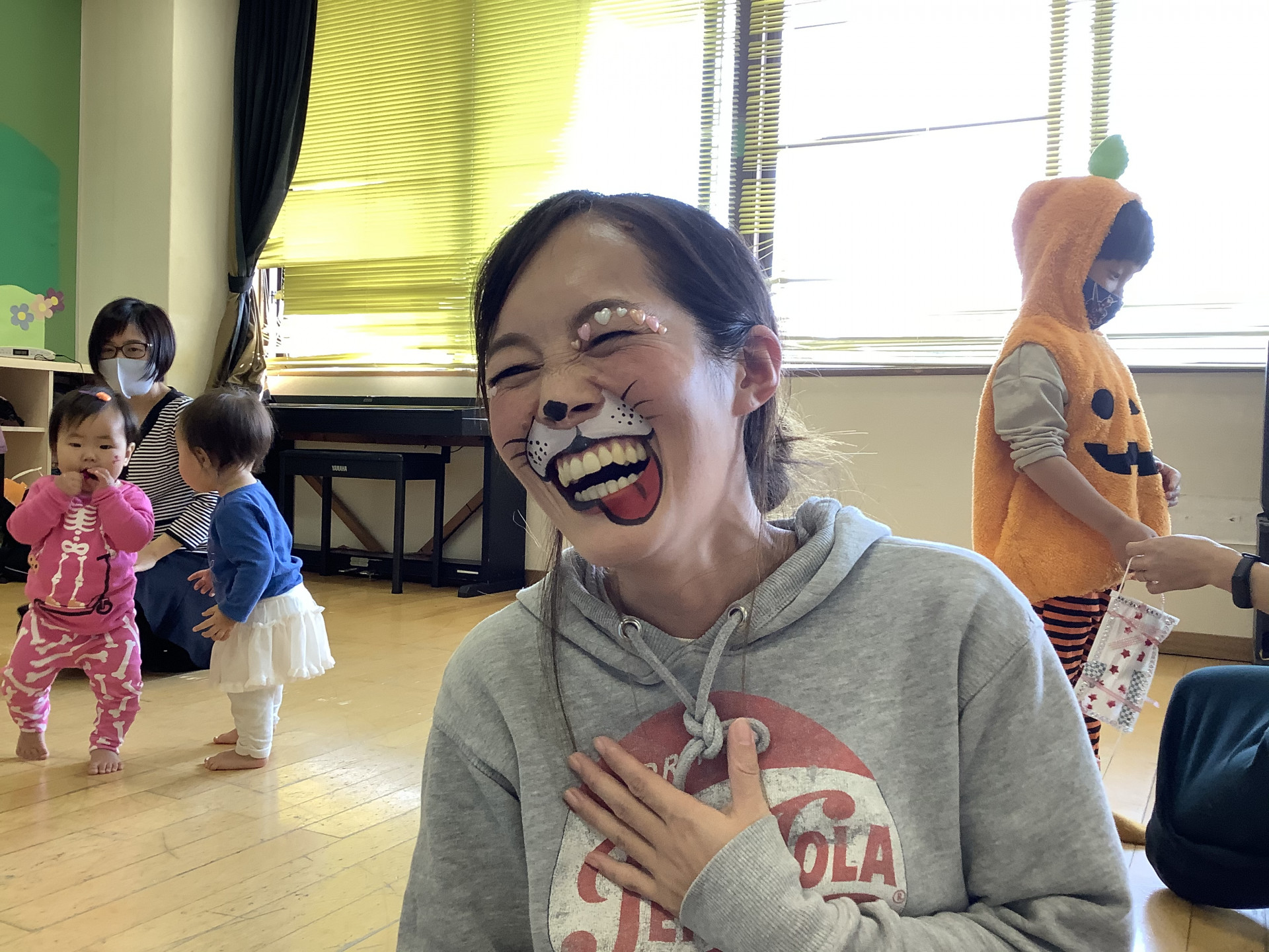 大阪府枚方市 津田図書館で開催されているふれあいルーム「みんなのどんどこ」でハロウィンフェイスペイントしました大阪で行っているママさんに勇気を与えるマタニティペイントについてご紹介。