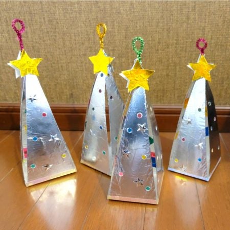 クリスマス工作 牛乳パックとアルミホイルでツリーBOXリビング埼玉Web。