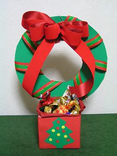 牛乳パックのクリスマス工作 クリスマスリースのキャンディーボックス: ひまじん日記。