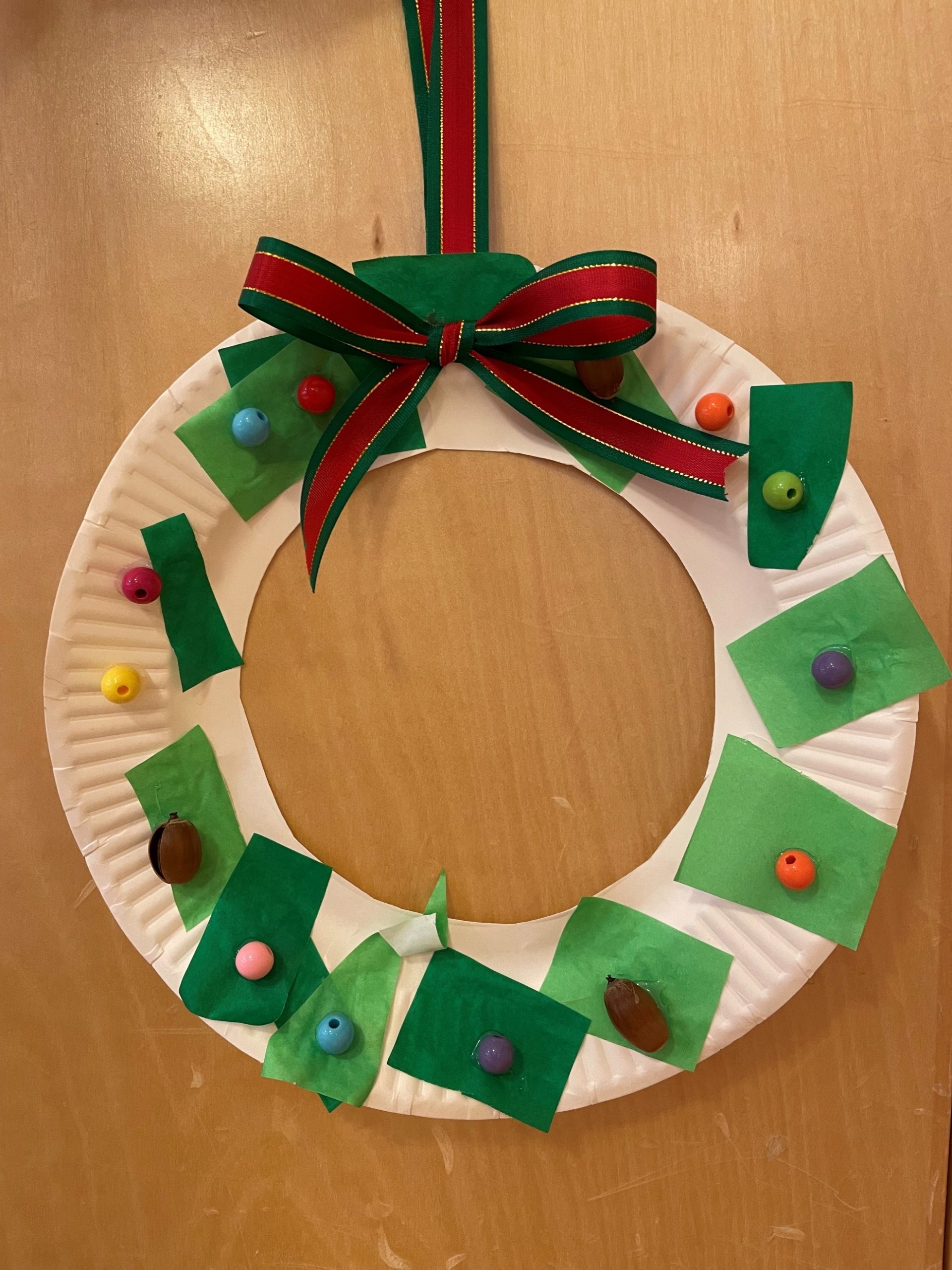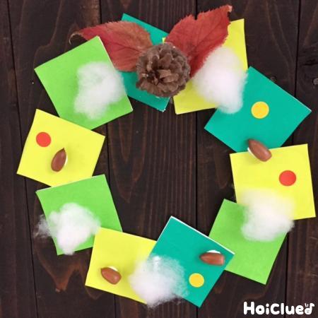 工作あそび 牛乳パックの簡単ペタペタ「クリスマスリース」絵本ナビスタイル。