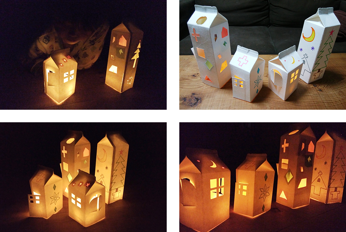 工作 クリスマスの牛乳パック工作 LEDで光るキャンディーボックス: ひまじん日記。