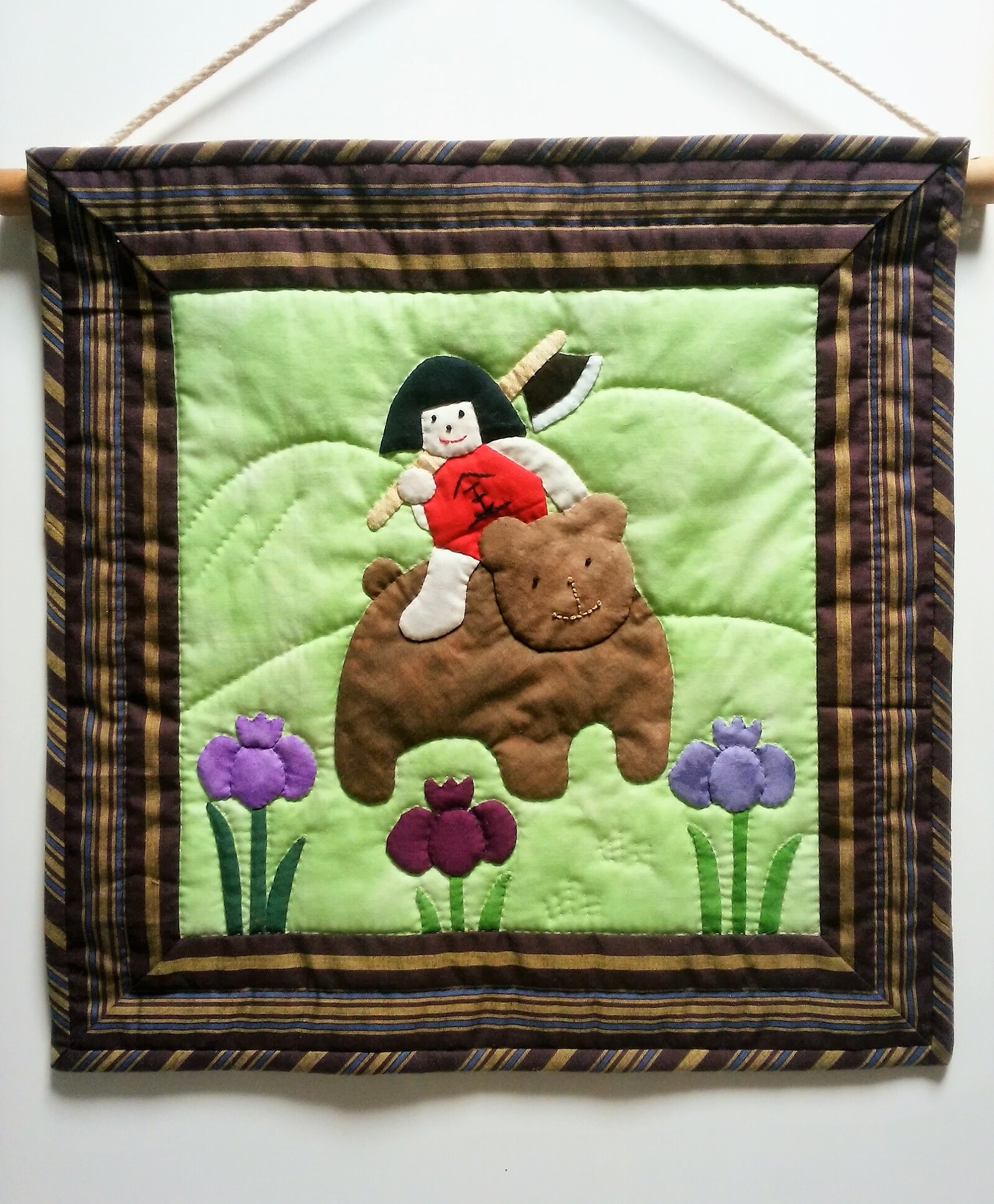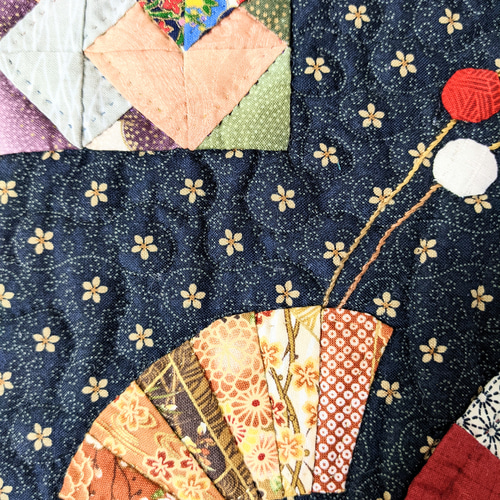 パッチワークタペストリー お正月ハンドメイド キルト。