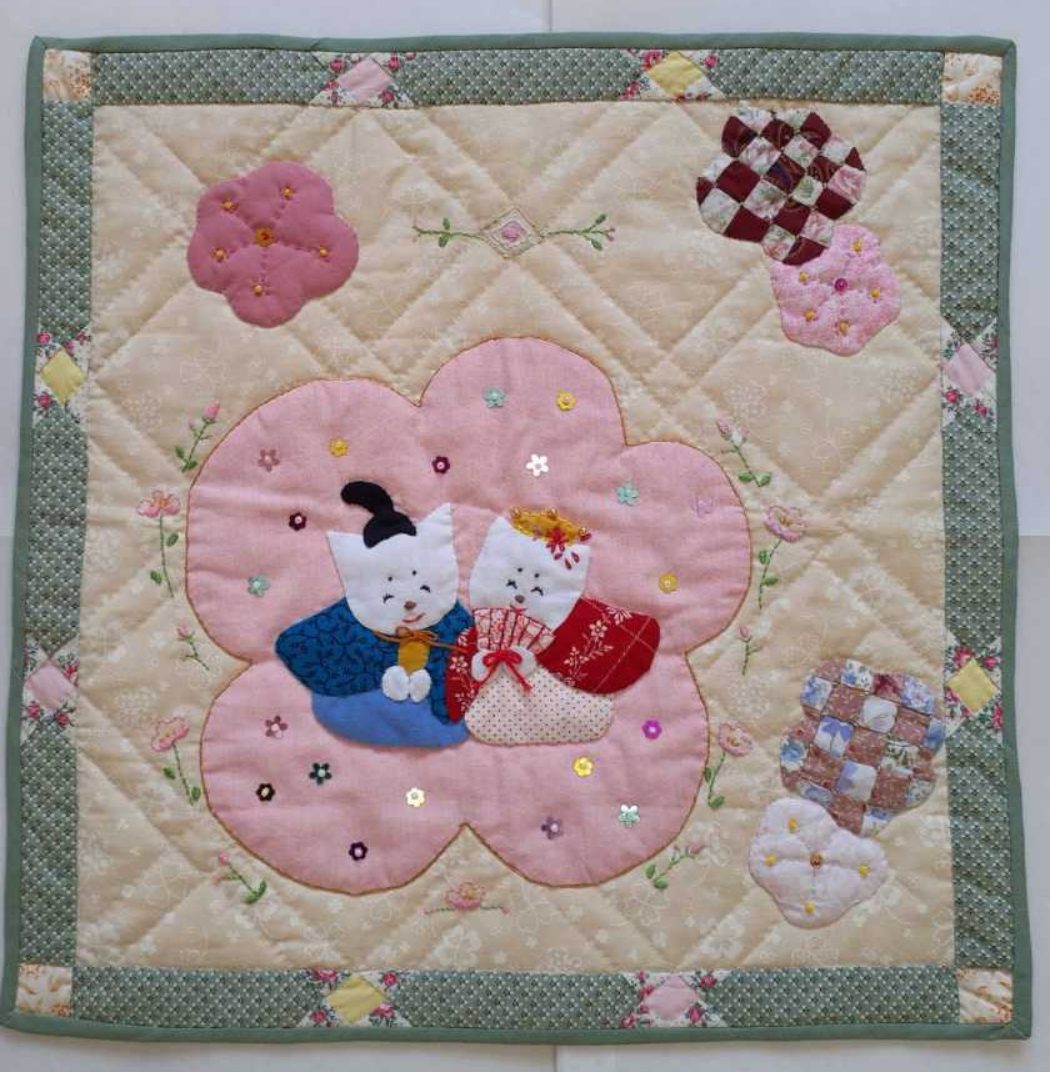 ハンドメイド パッチワーク 着物タペストリー 七五三 お正月 お雛祭り お雛様のミニタペストリー - 楽しいパッチ。