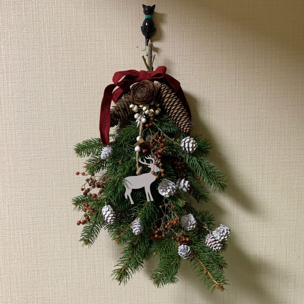 クリスマスの壁掛けアイテム・スワッグのレッスン フラワーアレンジメント教室Atelier Cheer。