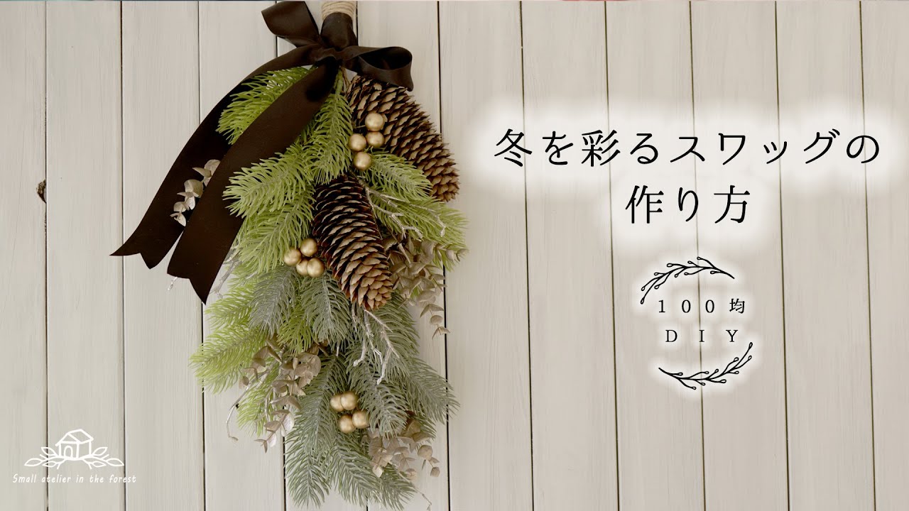 100均DIY クリスマススワッグの作り方100均造花で作るとっても簡単なスワッグHow to make a Christmas Swag。