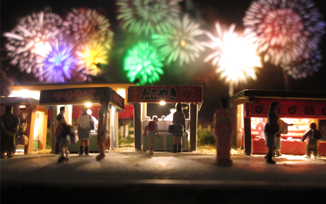 NゲージジオラマLED電飾工作 打ち上げ花火のジオラマ。