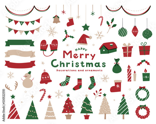 イラスト素材クリスマス デコレーション セット 5 クリスマスツリー ホワイト- M&M Collection。