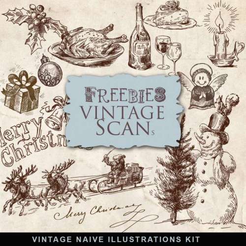 背景に使いたい!おしゃれなビンテージのクリスマスイラスト素材 – デジタルスクラップブッキング&コラージュ無料素材リンク集。