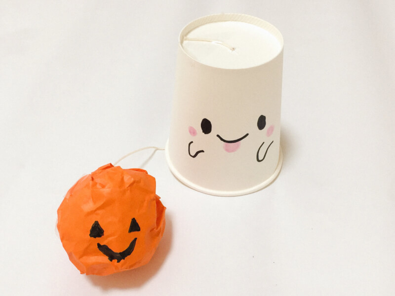手作りハロウィン 紙コップで簡単!おばけとかぼちゃのけん玉の作り方ほいくびより。